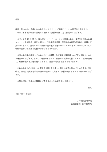 つきましては、今回の全国大会出場に際し、皆様から広くご寄附をたまわりたく、お願いする次第です。